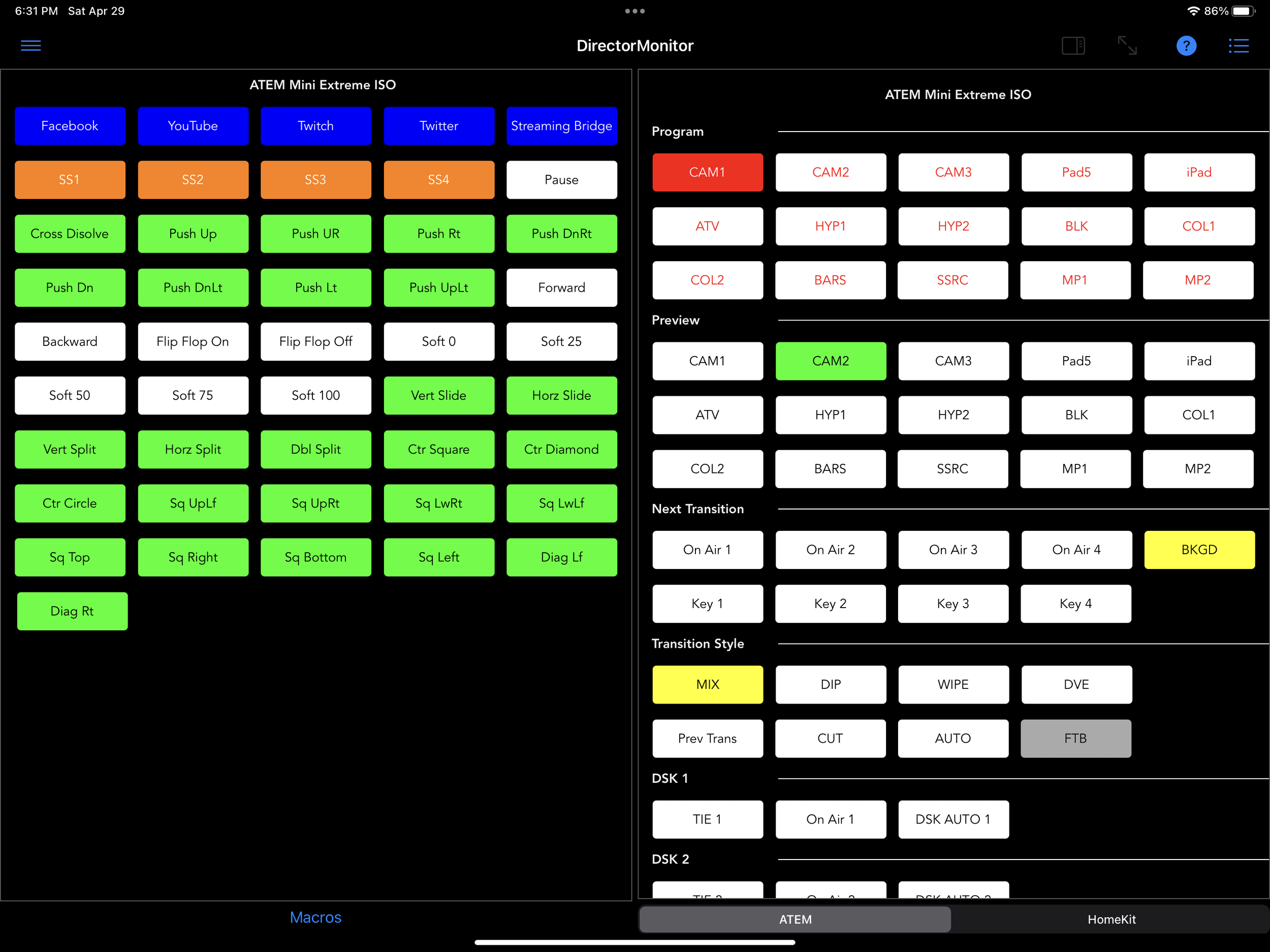 Blackmagic Design has taken the video creative industry by storm in their release of the ATEM Mini family of Switchers. Each switch type bring a range of features and capabilities to match the needs of the creatives. DirectorMonitor takes advantage of these capabilities by allowing a comprehensive integration with the “Mini” family. Although BlackMagic makes additional High end ATEM switchers DirectorMonitor has limited and untested compatibility with them
